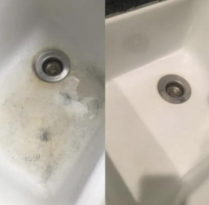 Houbee kann Schmutz, Ruß, Seifenschaum, Kalk, Kalzium und Flecken durch hartes Wasser in Minutenschnelle entfernen.